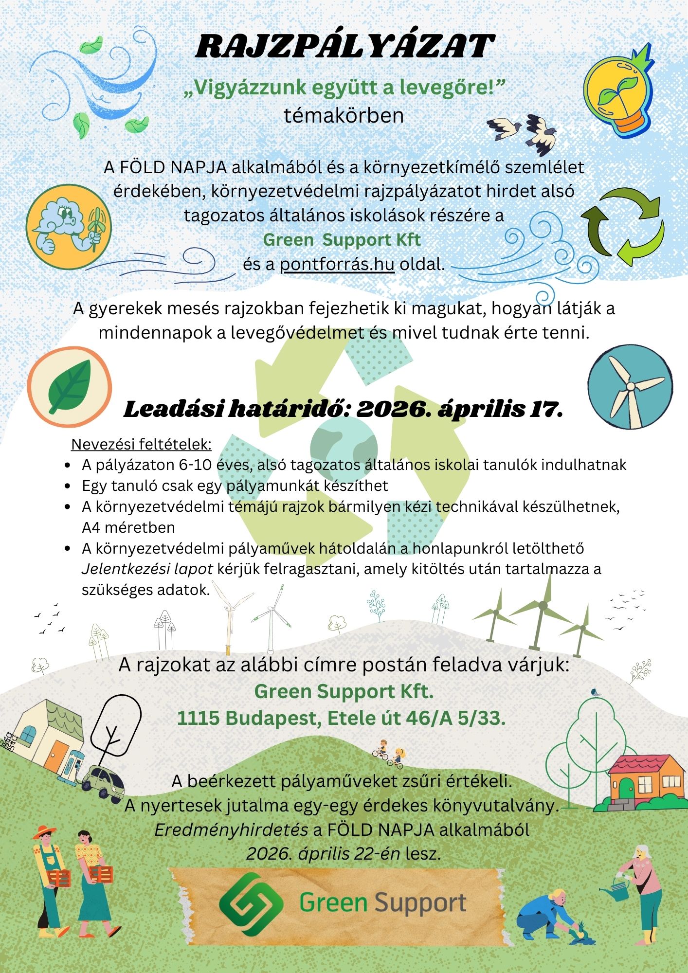 A pontforras.hu oldal rajzpályázatot hirdet alsó tagozatos iskolások számára "Vigyázzunk együtt a levegőre!" címmel. A pályázat részletes információit itt foglaljuk össze.   Környezetvédelmi rajzpályázat részletes ismertetője A Green Support Kft. és a...
